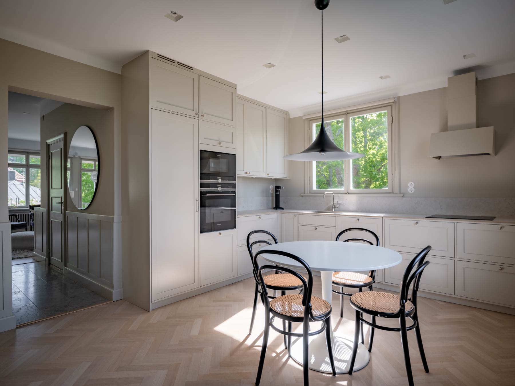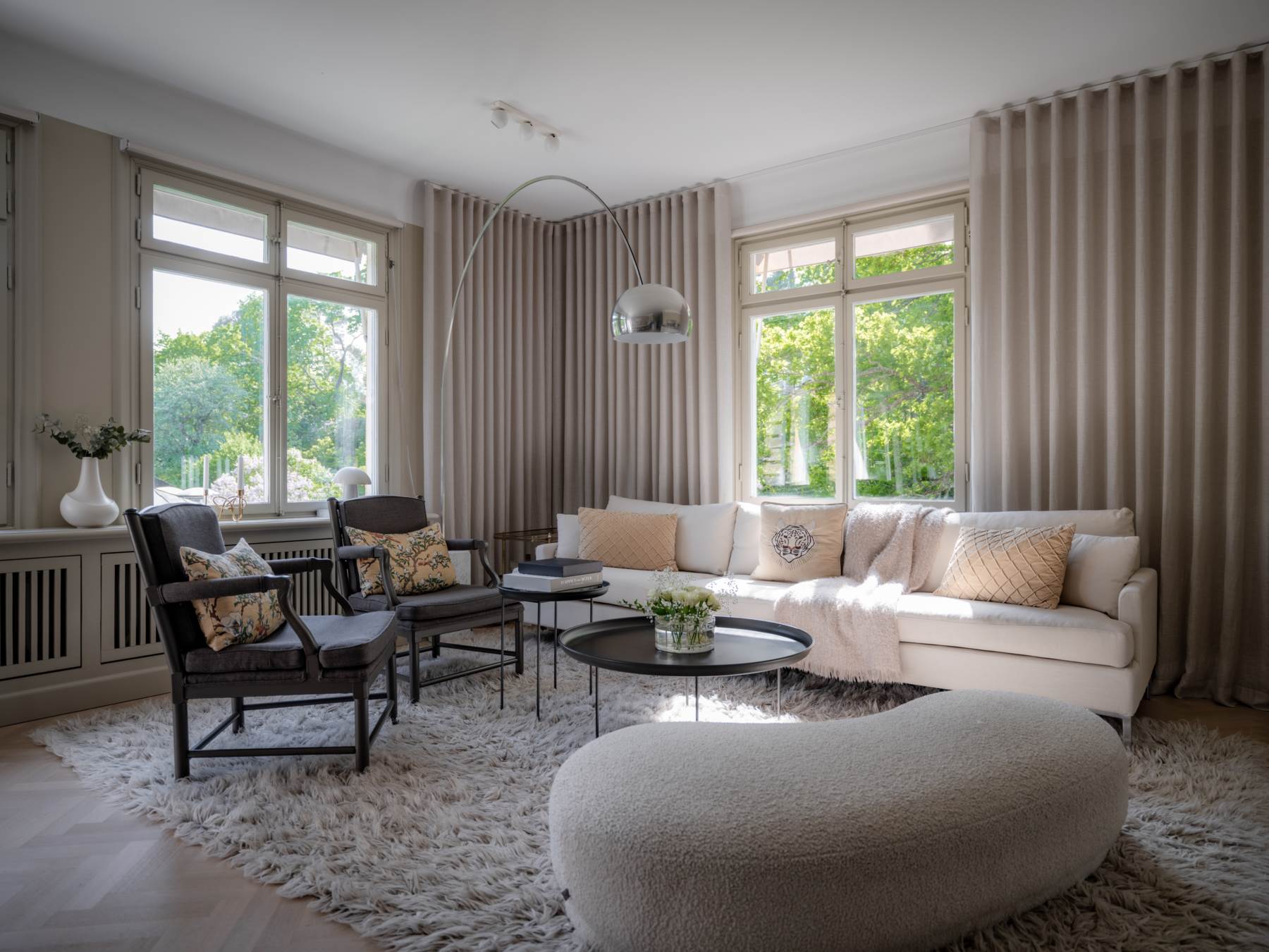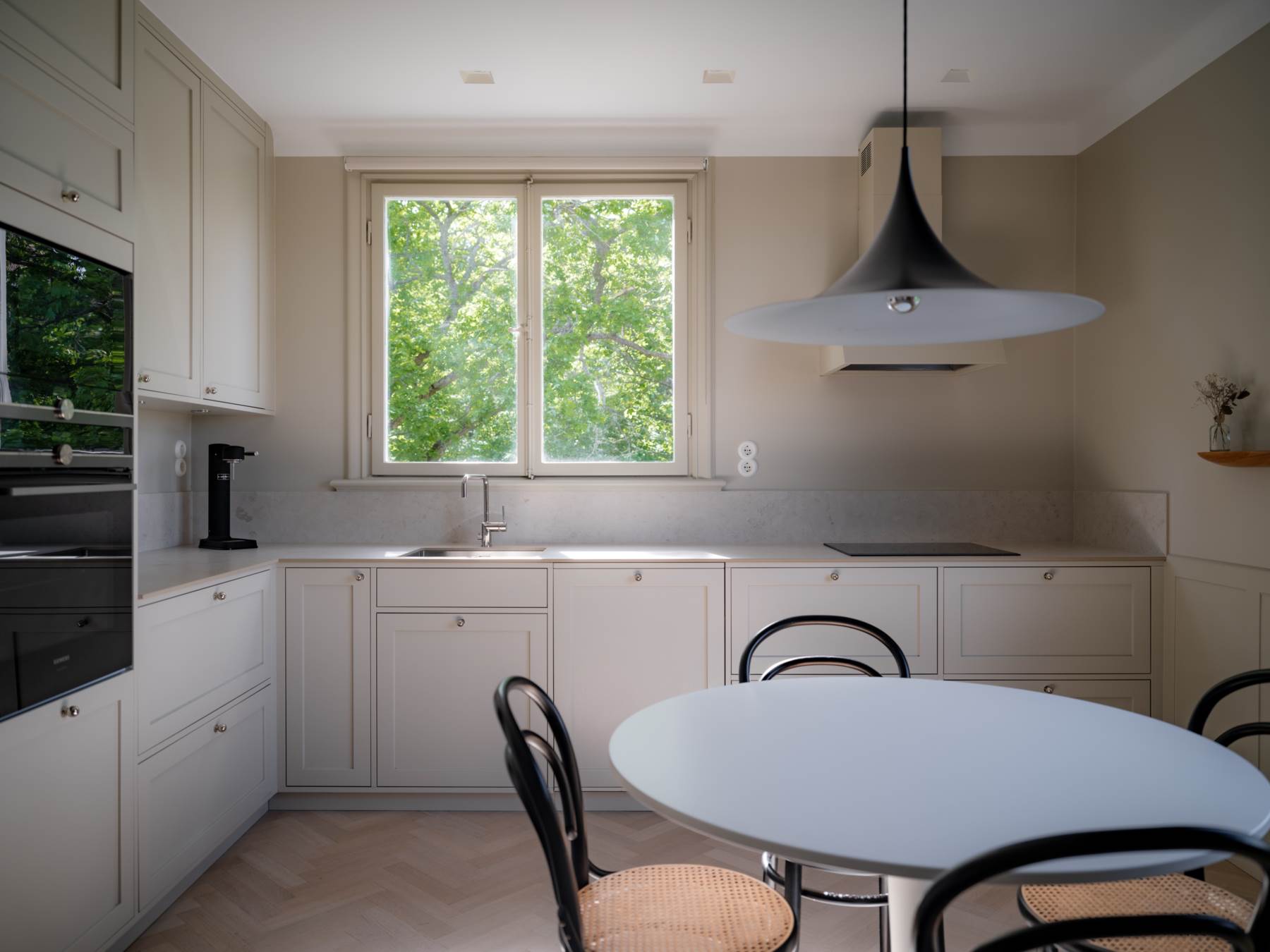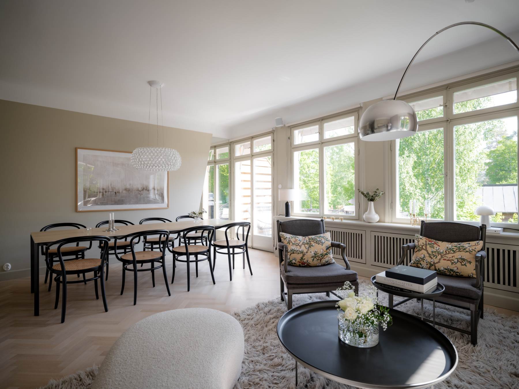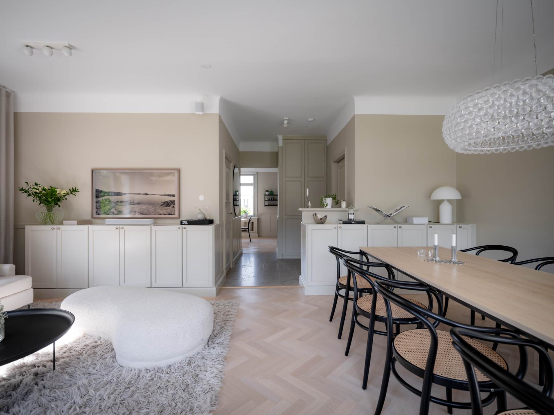 Lägenheten totalrenoverades mha inredningsarkitekt under 2021–2023