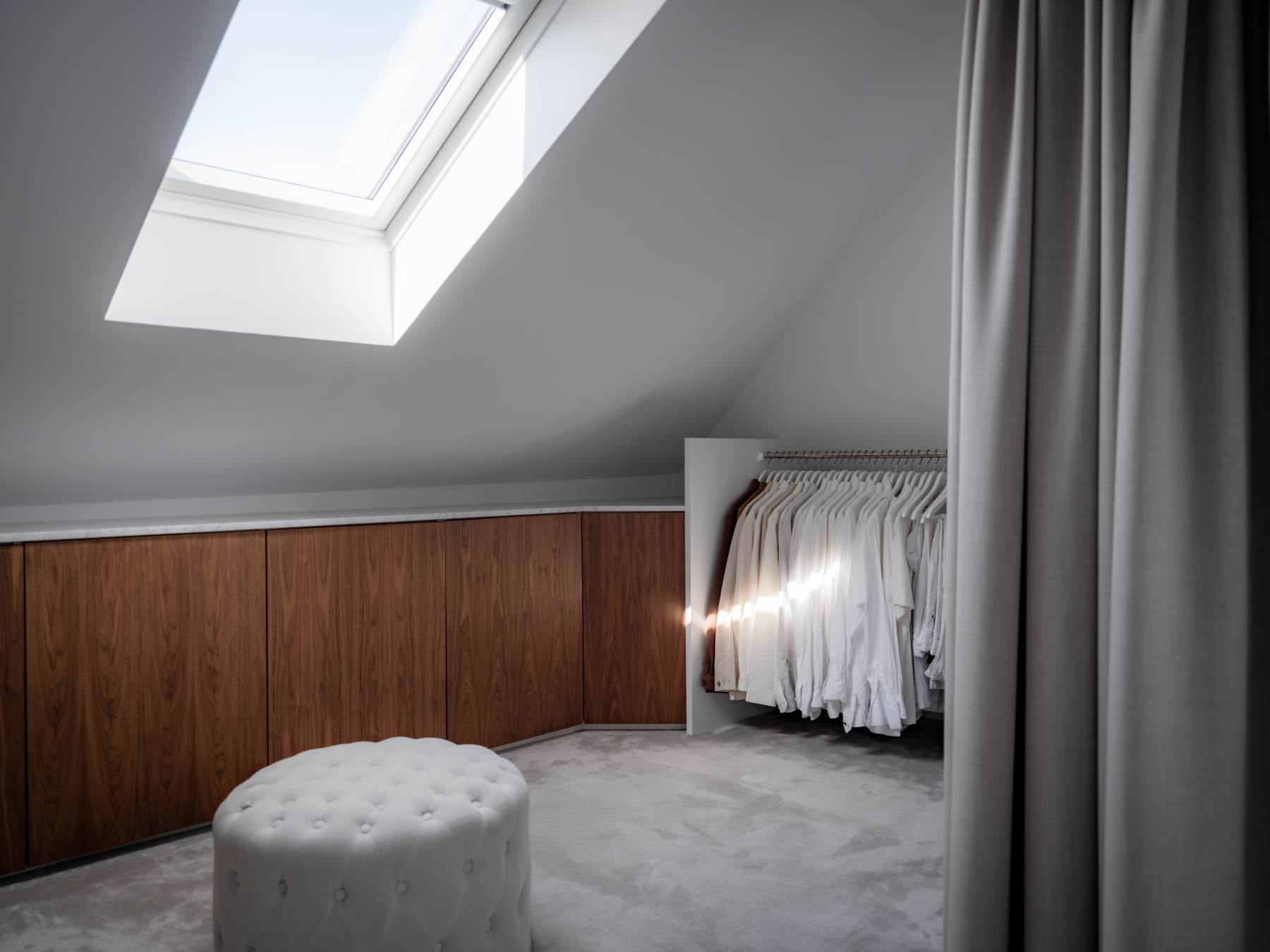 Fantastisk förvaring och avhängningsmöjligheter. Mycket trevlig walk in med fint ljusinsläpp från stora fönsterpartier. Heltäckningsmatta i beige och förvaring i valnöt med marmor detaljer.