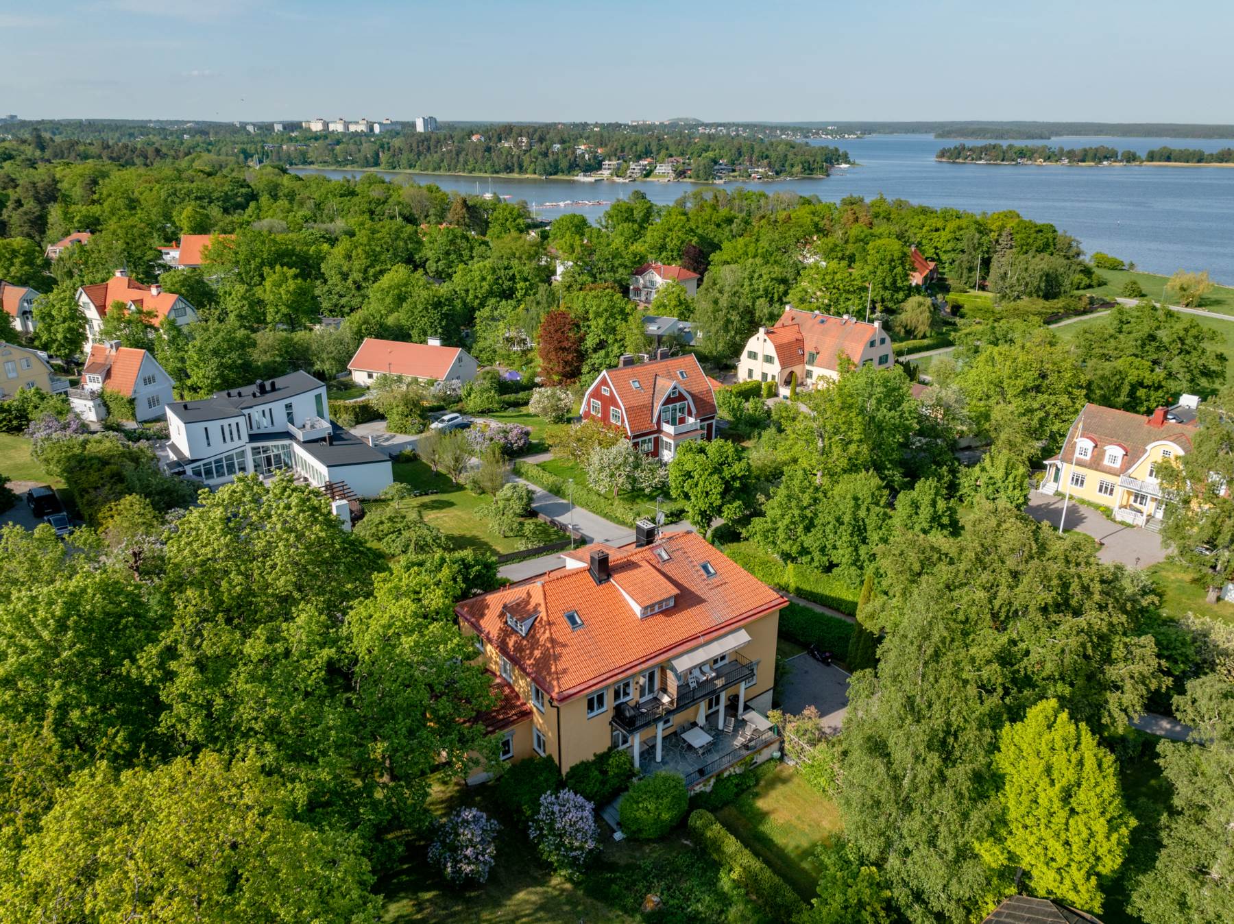 Attraktiv etagevåning om 171 kvm (139 kvm boyta och 32 kvm golvyta under snedtak) i natursköna Svalnäs. Våningen genomgick en totalrenovering under 2021/2022 och disponeras av härliga sällskapsrum med fint ljusflöde i entréplanet och högt i tak. Mycket exklusivt renoverat med vackra materialval och påkostade detaljer. Vacker kalksten, ljusa färger, vacker ljus fiskbensparkett. Entréplan är socialt med plats för stora sällskap. En trappa upp finns det privata sovrumsplanet med tre sovrum, rymlig walk in closet, badrum och generöst vardagsrum. Dubbla balkonger varav en med havsutsikt! Nyrenoverat kök från Nordiska Kök. Villan är ursprungligen från 1938 med stor och härlig trädgård om 2551 kvm. Nära till vatten, natur, skolor och service. Cirka femton minuters promenad till Roslagsbanan, Altorps Station och bara några minuter till bussen.