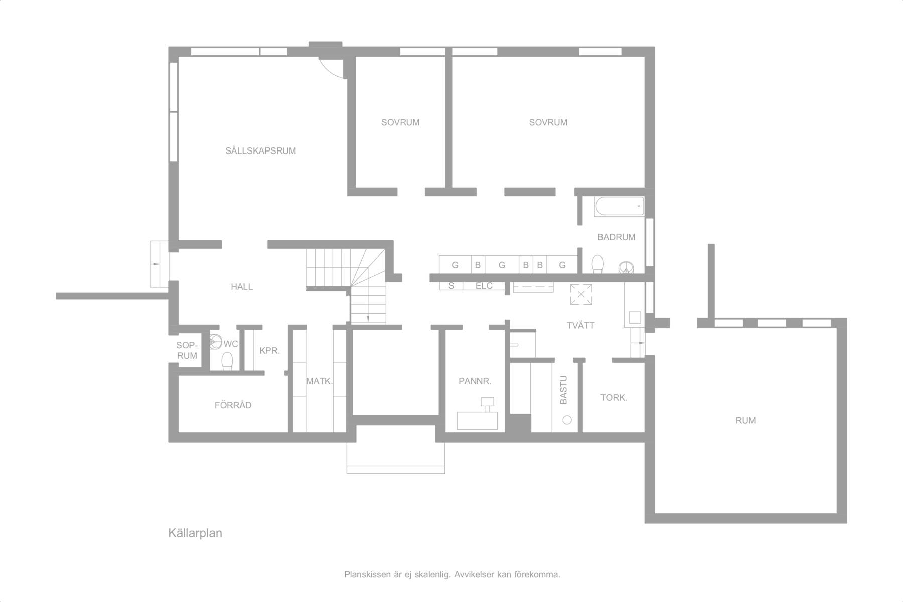 Här finns ett till rymligt plan med utgång till det underbara poolområdet och tomten. Här finns även ett stort sällskapsrum med öppen spis samt flera sovrum och ytterligare rum som kan disponeras helt efter smak och behov. Tvättstuga, pentry samt bastu/badrum.