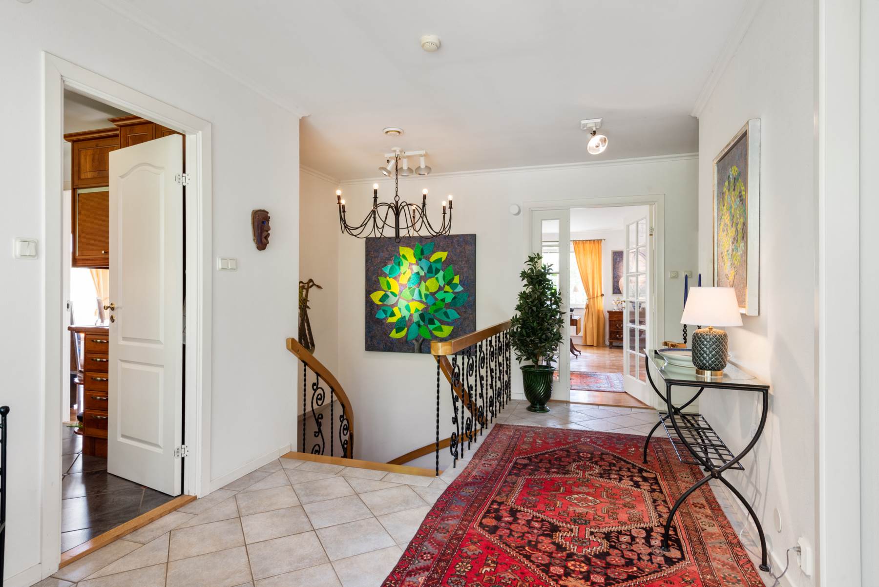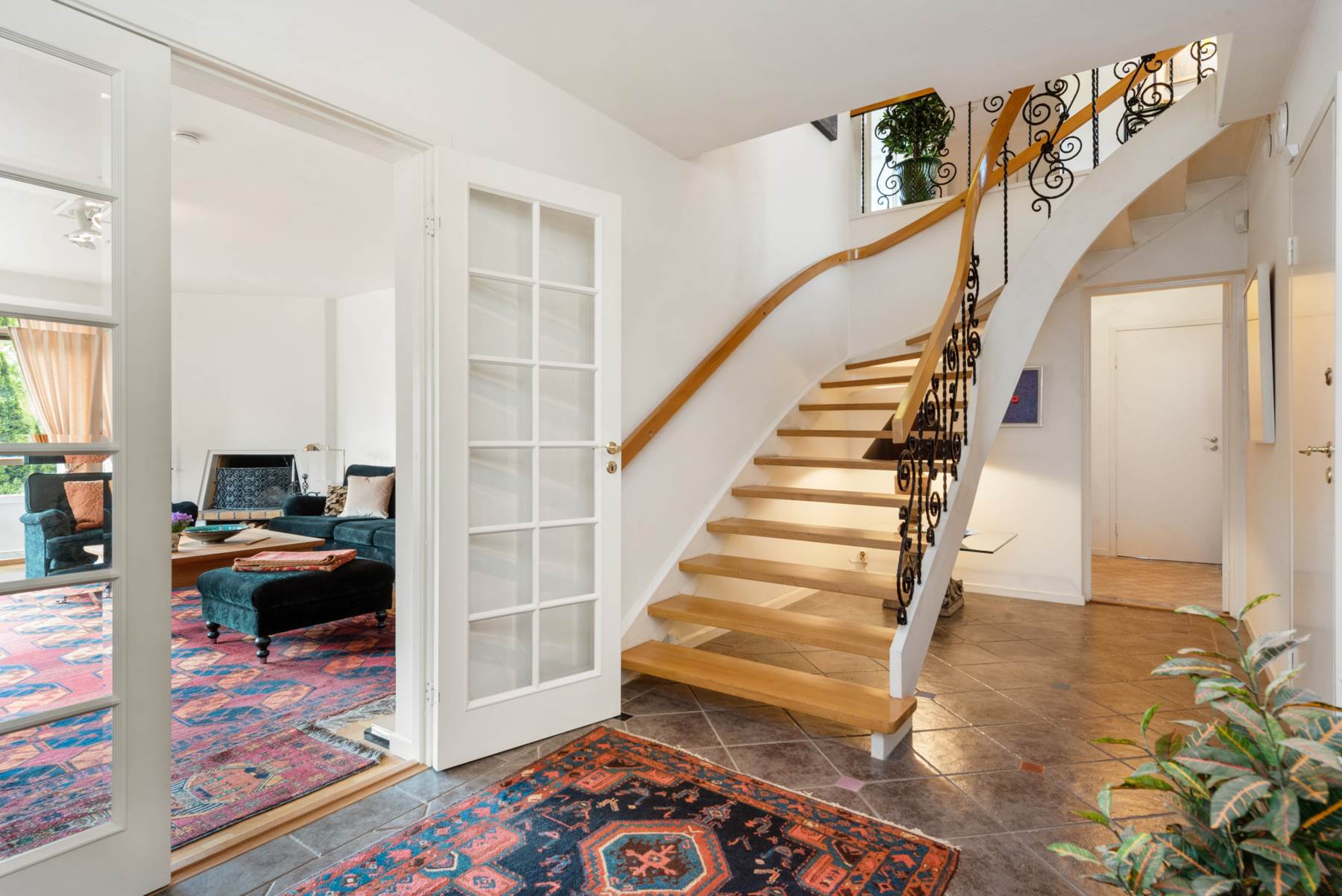 Välkomnande hall med gedigna garderober och gästwc.