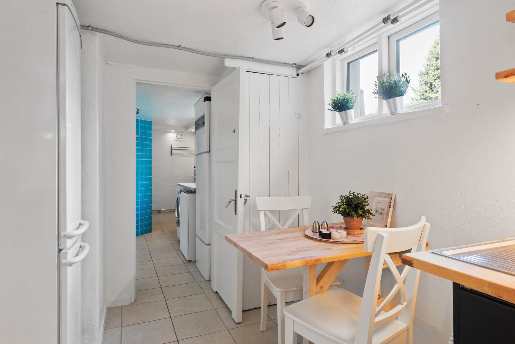 - Fullt utrustat kök i källaren (ej helt nya vitvaror men fungerar bra). Kyl/frys, diskmaskin, spis, ugn, micro och kolfilterfläkt