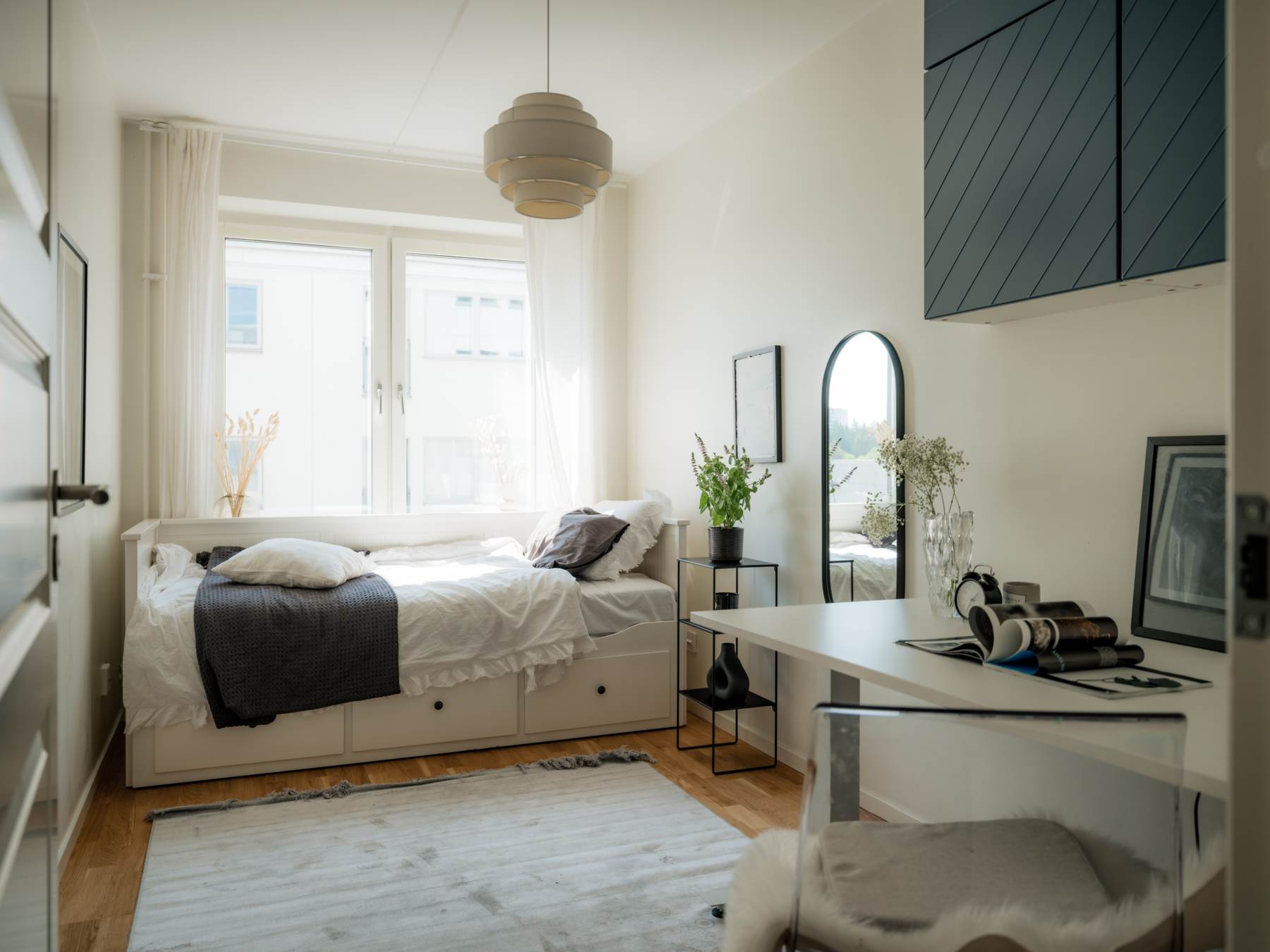 Ytterligare ett bra sovrum med plats för säng och skrivbord. Ekparkett på golvet och ljusmålade väggar.