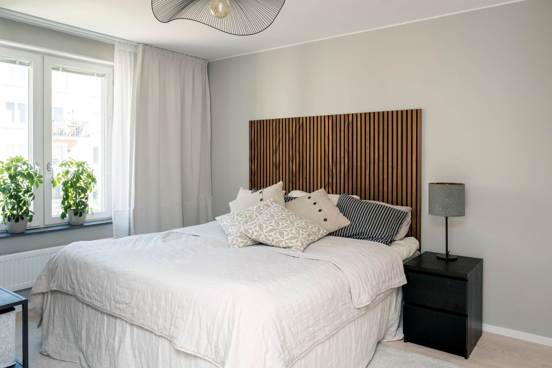 Det finns tre bra sovrum. alla med vitpigmenterade parkettgolv och ljusa väggar. I två av sovrummen finns flertalet garderober för förvaring och alla rum har fina ljusinsläpp genom stora fönsterpartier. Ett av sovrummen har garderober i direkt anslutning utanför rummet och här har man även en lyxig känsla av att lägenhetens andra badrum är en suite.