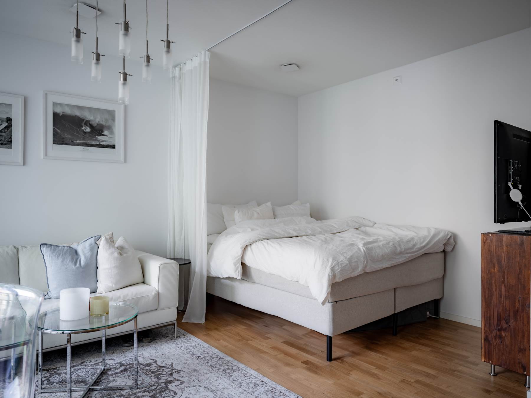 Varmt välkommen till Solnavägen 37 och denna mycket fina och ljusa lägenhet i populära området Nya Råsunda. Denna bostad präglas av fina material, bra ljusinsläpp och en otroligt bra helhet. Man välkomnas in i bostaden via en rymlig hall med goda möjligheter för förvaring av ytterkläder. Vidare till kök och vardagsrum i en öppen planlösning, här finns gott om utrymme för soffa och matplats. Denna yta är väldigt social och öppen, köket är i ljus ton och fullt utrustat med kyl, frys, induktionshäll, micro, ugn och diskmaskin. Badrummet är rymligt och fräscht, helkaklade väggar och klinker på golvet, fullt utrustat med WC, dusch, handfat och tvättmaskin. Det finns även en praktisk sovalkov som skärmar av ytan snyggt och erbjuder en mer privat plats för att sova. Lägenheten har även ett rymligt förråd i direkt anslutning till köket. Kombinationen av ett attraktivt läge och en lägenhet som ligger högt och fritt gör detta till ett hem att verkligen längta hem till.