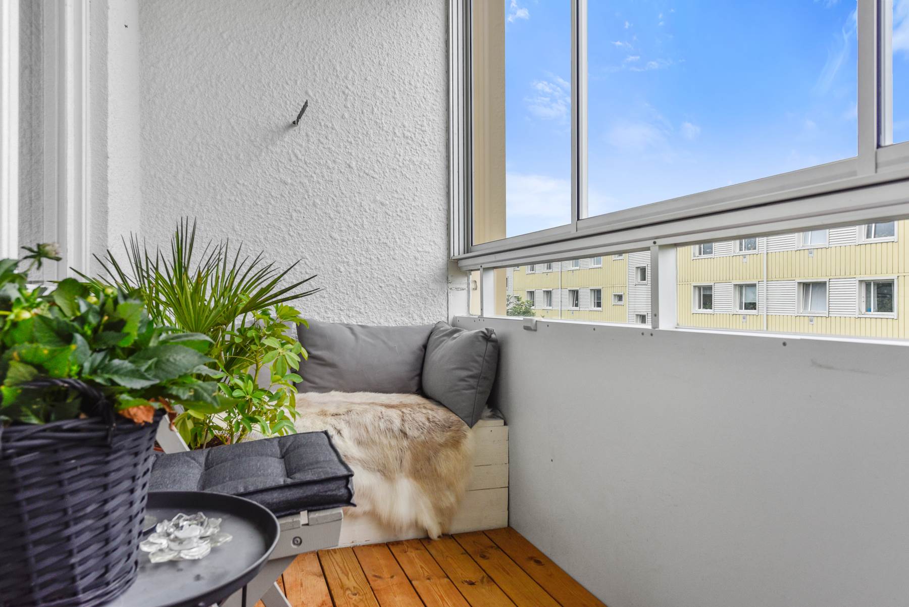Balkongen är inglasad och rymlig för möblemang om så önskas. Hög mysfaktor!