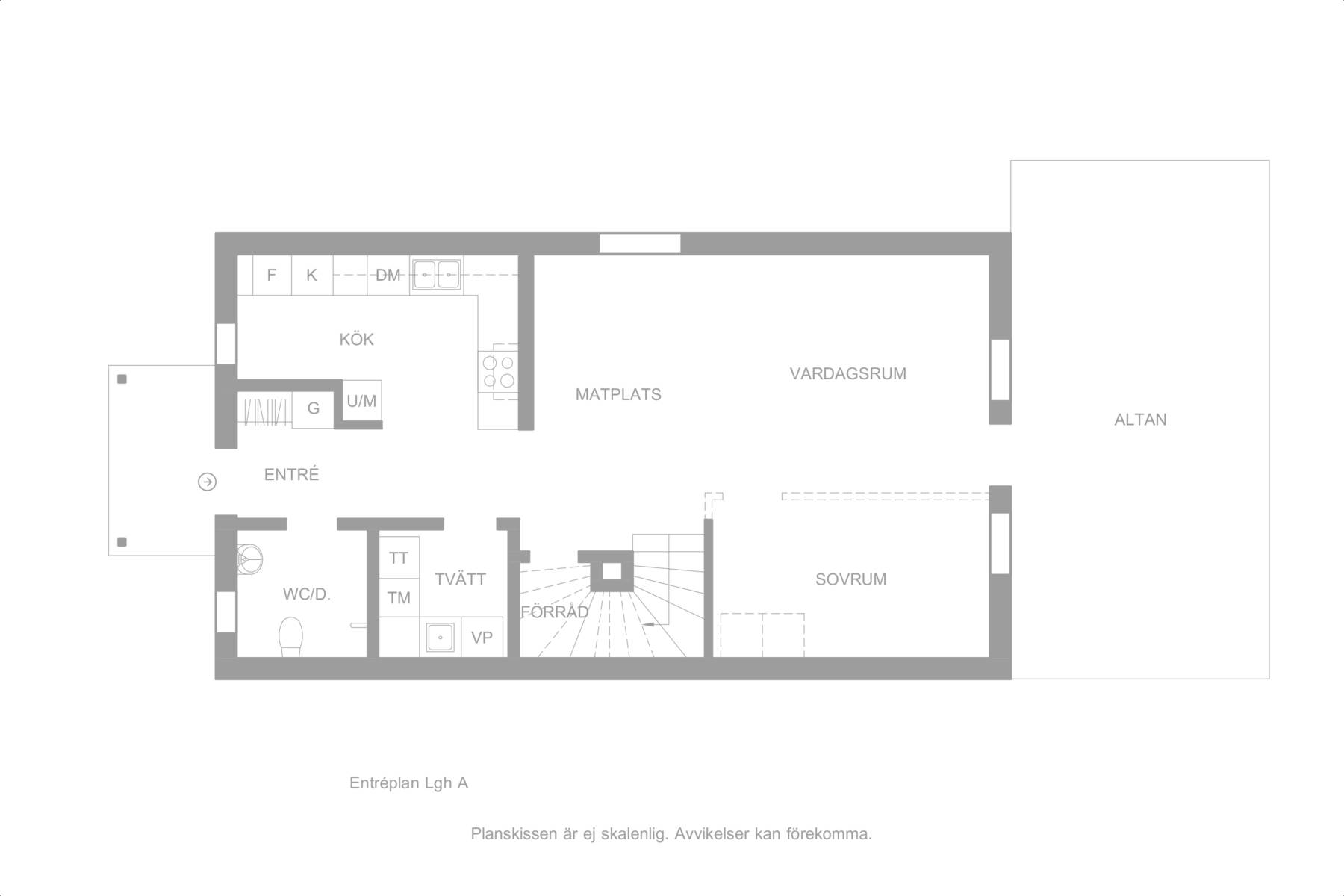 På nederplan finns allt man behöver, ordentligt kök, stort vardagsrum där det finns möjlighet att bygga ett ytterligare sovrum. Stilrent badrum och separat tvättstuga. Går man upp för trappan kommer man direkt till allrummet alternativt hemmakontor, i anslutning finns tre sovrum där ett är större. Finns även klädkammare samt badrum med badkars möjligheter.