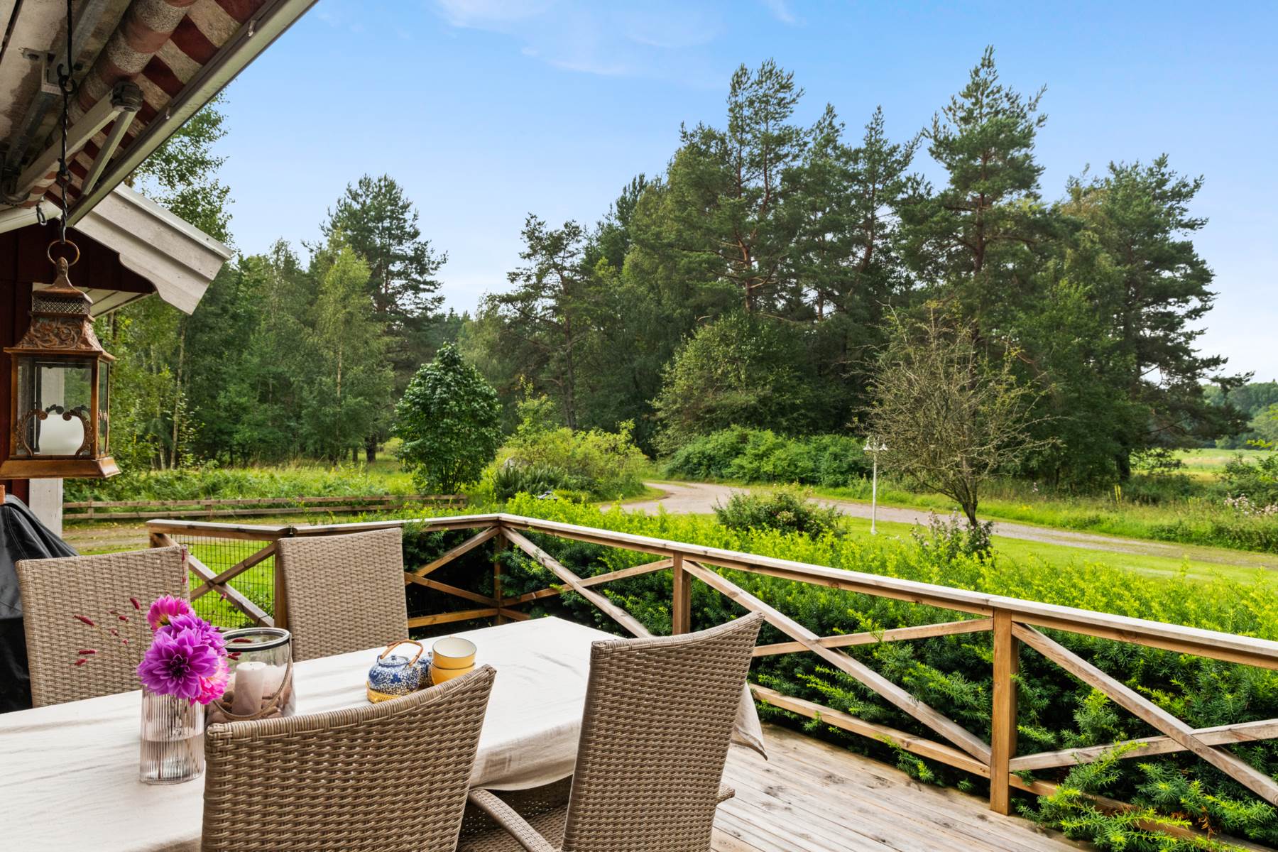 En väldigt tilltalande planlösning där hallen är rymlig och har en gäst-WC direkt till höger. Till vänster ligger köket som självklart har full maskinell utrustning såsom kyl, frys, diskmaskin, spis och spisfläkt. Från köket nås allrummet med braskamin, som blir den självklara platsen att samlas runt under sena höstkvällar. Allrummet och vardagsrummet har en öppen planlösning som ger plats för soffgrupp, tv-hörna och matsalsbord. Altandörren tar dig ut till uteplatsen med utsikt över både tomt och ängar. Här finns även ett inglasat uterum som förlänger sommarsäsongens vistelse. Tre vilsamma sovrum finns i huset och det finns även ett större toalettrum, med dusch. Fiber finns indraget till huset. En separat tvättstuga nås från köket och här kommer du dessutom vidare in i garaget. På tomten ligger även friggebod och förråd. Tomten är vackert parkliknande med fina planteringar och växter. På cykelavstånd ligger Bredsjön för bad, fiske och avkoppling. Vid bryggan finns även möjlighet att lägga en liten båt! Gångavstånd till busshållsplats som tar dig in till Norrtälje.
