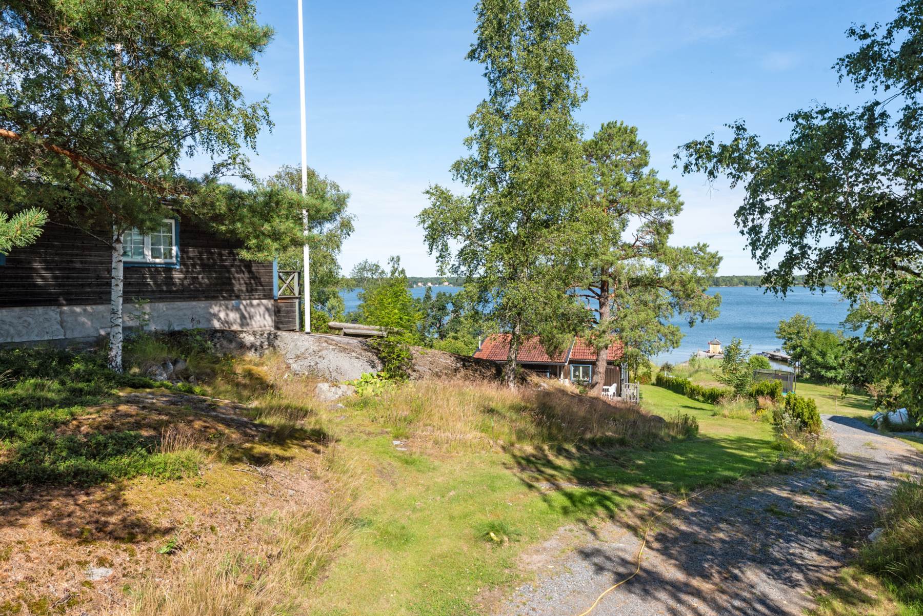 Riktigt tilltalande strandfastighet intill Furusundsleden med kvällssol och magiska solnedgångar.